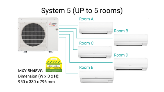Wide range of air conditioner that had obtain 5 ticks excellent energy efficiency rating from National Environment Agency.